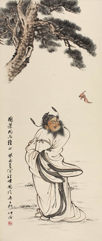 款识:国荣同志雅正,癸酉春写钟馗图于丹石轩。仲海。