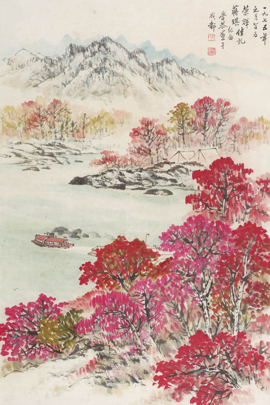 款识:一九七五年元月写为荣辉、蒋琪佳礼纪念,学恭画于成都。