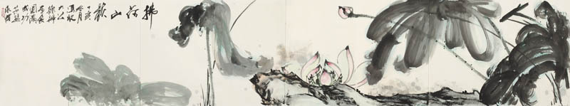 款识:拂荷山韵。丁亥冬月写祝大公操办画展圆满成功。蔗孙永成。