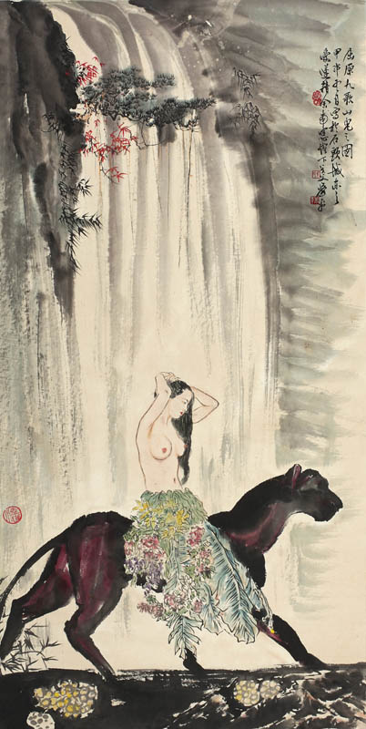 款识:屈原九歌山鬼之图。甲申冬月写于石头城东之爱莲精舍南窗灯下,戈父萧平。