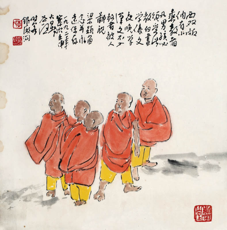 款识:西双版纳有小乘教者,凡男孩必须受此教,白昼学傣文,夜晚学汉文,不入教者被人鄙视。梁颖留念并永远保存。一九九二年岁次壬申大暑道熙时客银厂沟。