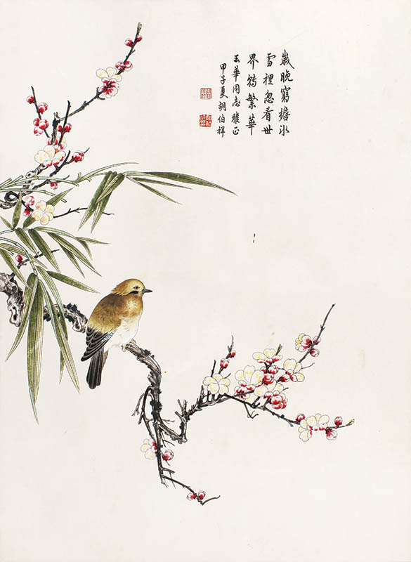 款识:岁晚,穷檐冰雪里忽看世界转繁华。玉华同志雅正,甲子夏,胡伯祥。