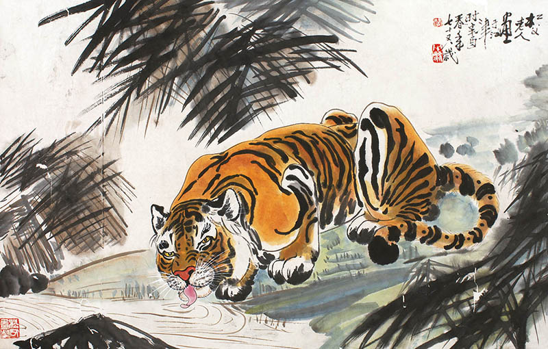 钤印:阎;八十翁;松父画虎