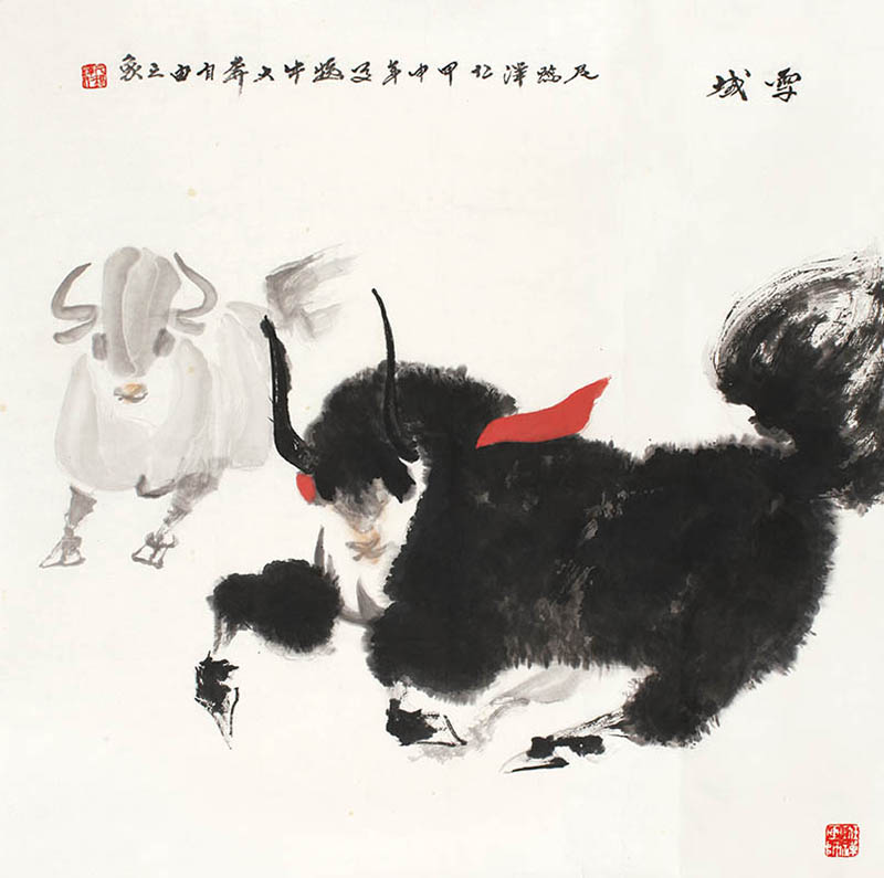 款识:雪域。尼玛泽仁甲申年写牦牛大奔自由之象。