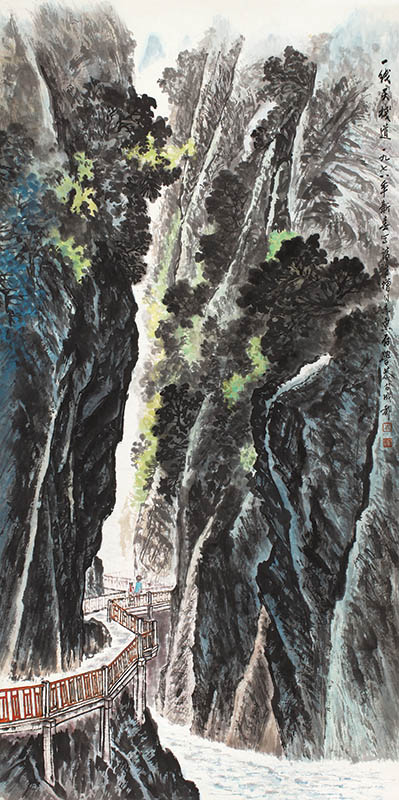 款识:一线天栈道。一九七八年新春写请世增同志惠存,学恭于成都。