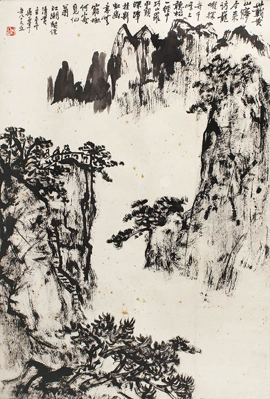 款识:卅载黄山梦,今来访茏葱。探奇千峰上,听松一径中。巧山罗壮观,深潭挂彩虹。幽意无穷极,何处觅仙翁。江潮贤侄清赏,辛未冬,吴一峰年八十又五。