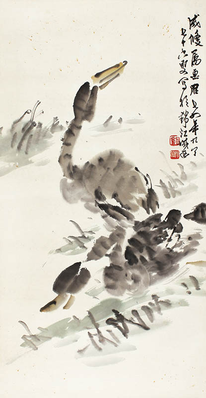 款识:成修嘱画雁,七四年九月七十六叟写于锦江城西。