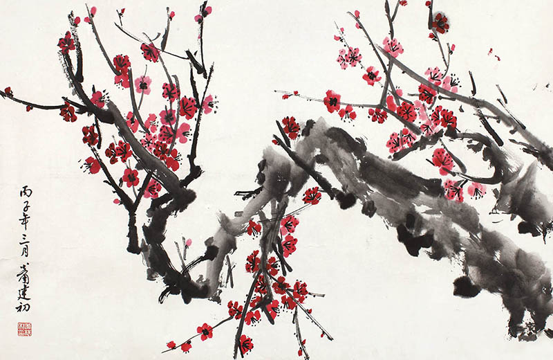 款识:丙子年三月,萧建初。