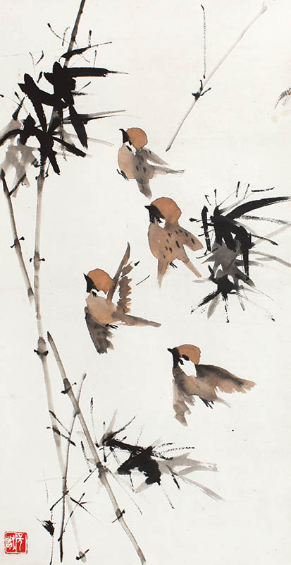 简介:彭先诚(b.1941):四川成都人。四川省诗书画院国家一级美术师,中国美术家协会会员,四川美术家协会理事。擅长没骨点染破墨法,善画鞍马人物。作画重于直觉,注重偶然的水墨关系,其作品笔精墨妙,格调清新,风格独异。
