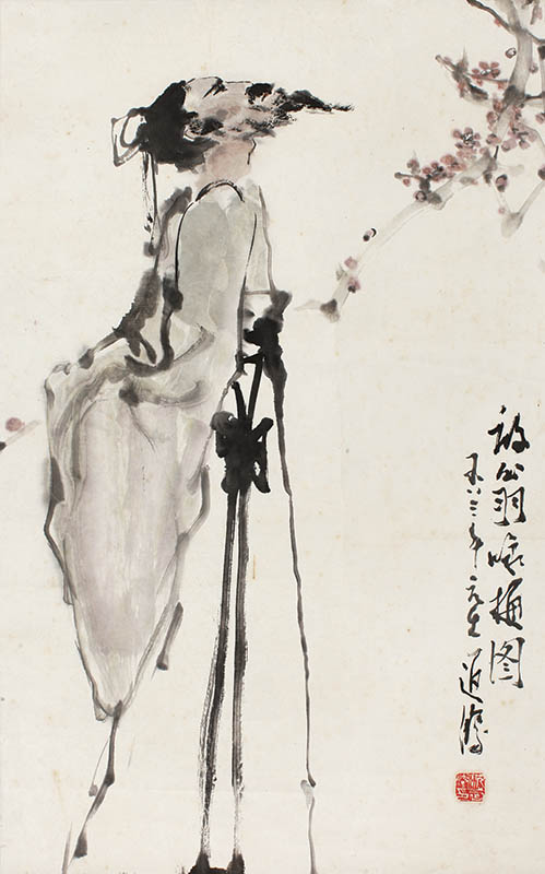 款识:放翁咏梅图。一九八三年元旦,道鸿。