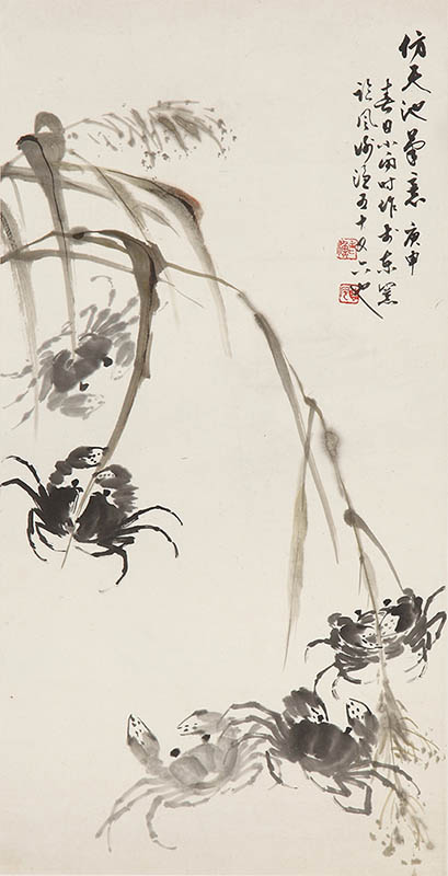 款识:仿天池笔意庚申临风谢渔五十又六也