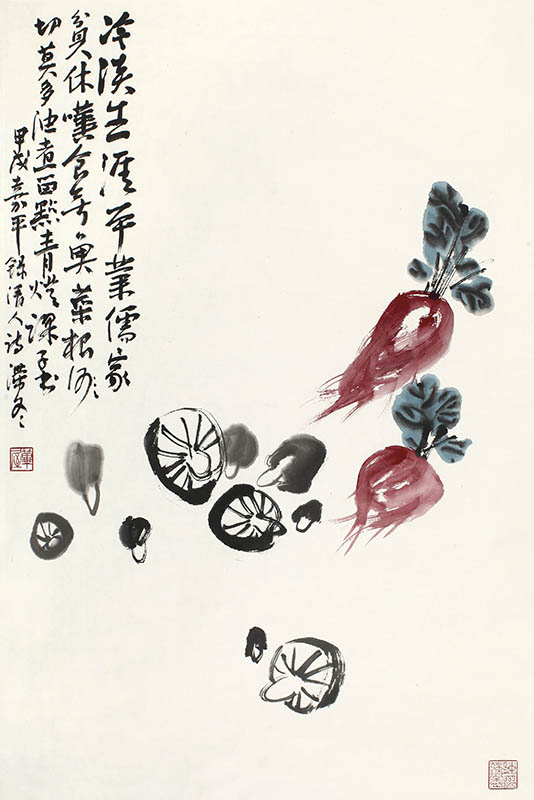 款识:冷淡生涯平叶儒,家贫休叹食无鱼。菜根【何】切莫多油煮,留点清灯课子书。甲戌嘉平录清人诗。滞冬。