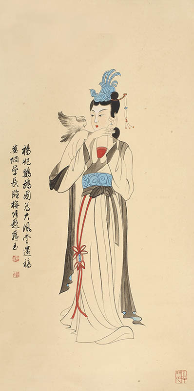 款识:杨妃鹦鹉图为大风堂遗稿娄炯学长临模嘱题蕴玉