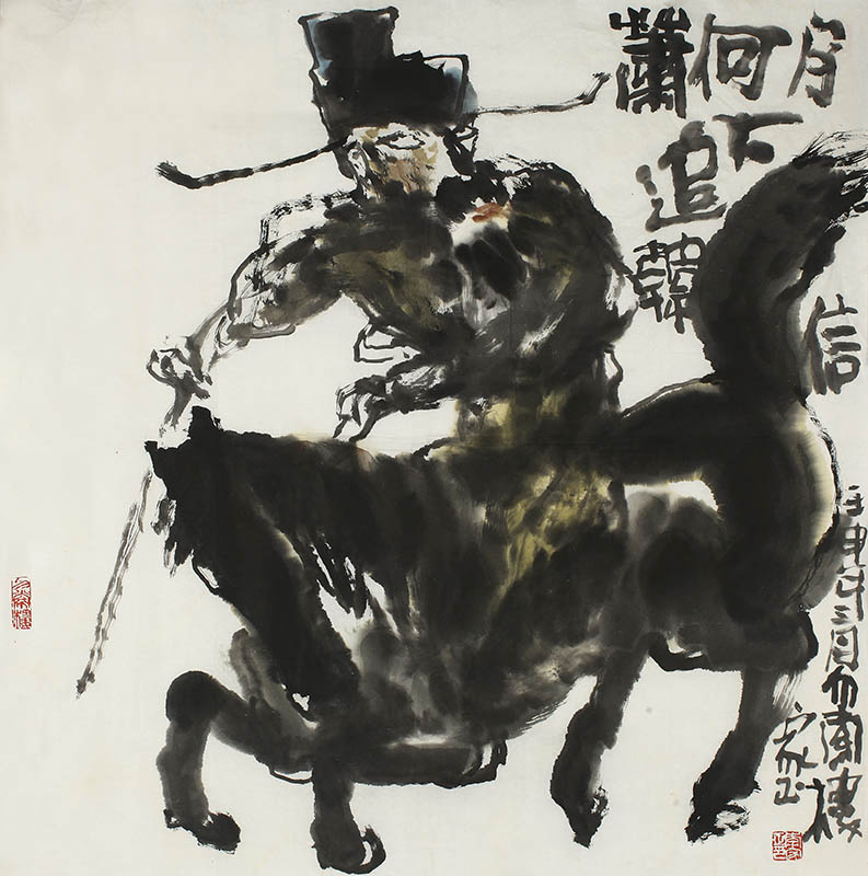 款识:萧何月下追韩信。壬申年三月勿索楼家正