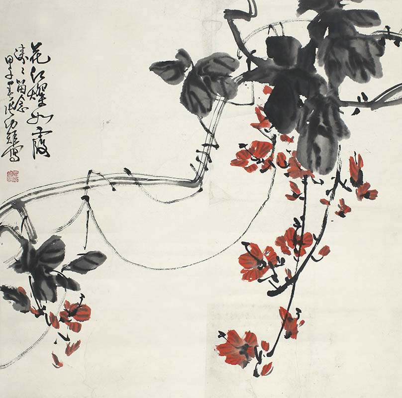 款识:花红灿如霞涛涛留念甲子春张幼矩写