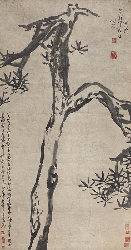 款识:写为兰皋先生八大山人。八大山人画世多赝本,不堪入目,此帧高古超逸,无溢笔无艏笔,方是庐山真面,常从迟鸿轩借读因题其后。已未仲秋佳日吴俊卿。