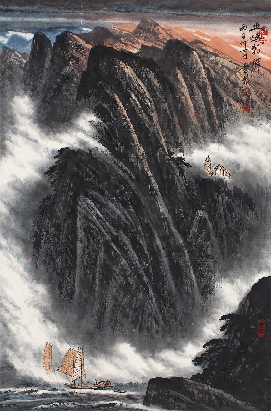 款识:巫峡朝晖。丙子仲夏,学恭。