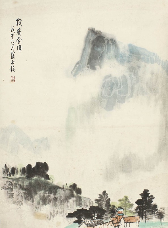 款识:峨眉金顶。戊午六月蕴玉稿。