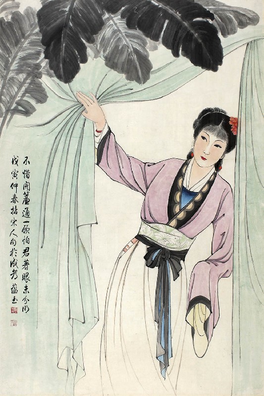 款识:不惜开簾通一顾,怕君着眼未分明。戊寅仲春拈宋人句于成都,蕴玉。