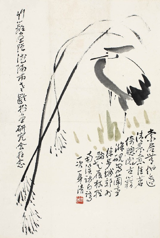 款识:竹篱画赠德阳市老龄书画研究会存念:索居无他边,清晨煮佳茗。倚窗阅古籍,涤砚写兰亭。徐步城郊外,踏花履杖轻。南溪仿白鹭,一次一身清。