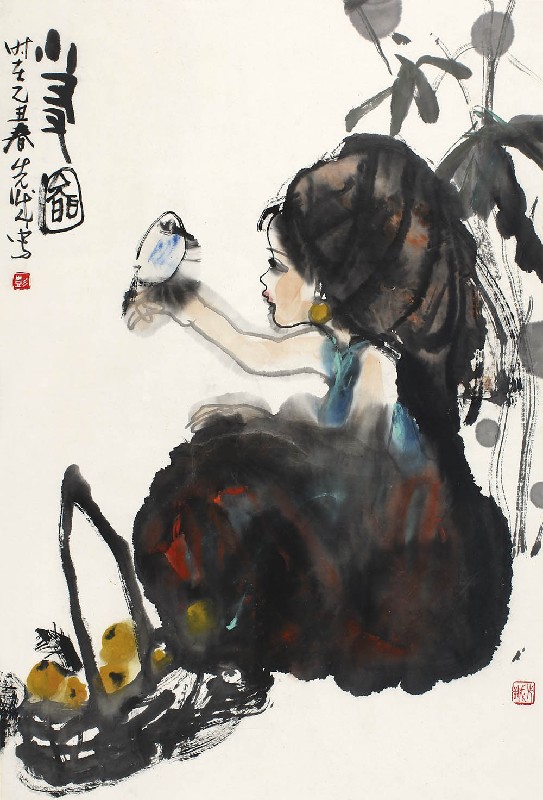 简介:彭先诚(b.1941):四川成都人。四川省诗书画院国家一级美术师,中国美术家协会会员,四川美术家协会理事。擅长没骨点染破墨法,善画鞍马人物。作画重于直觉,注重偶然的水墨关系,其作品笔精墨妙,格调清新,风格独异。