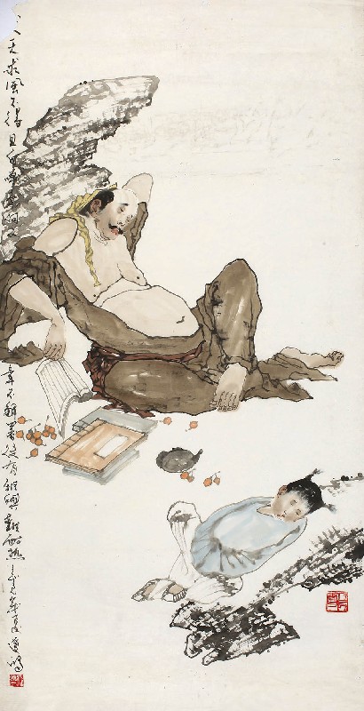 款识:夏天求风不得,且自嘲奈何,文章不解暑,徒有雅兴难耐热。辛巳年夏道鸿。