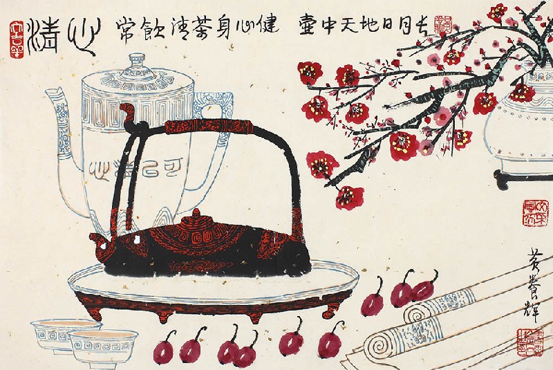 款识:清心。常饮清茶身心健,壶中天地日月长。黄养辉。