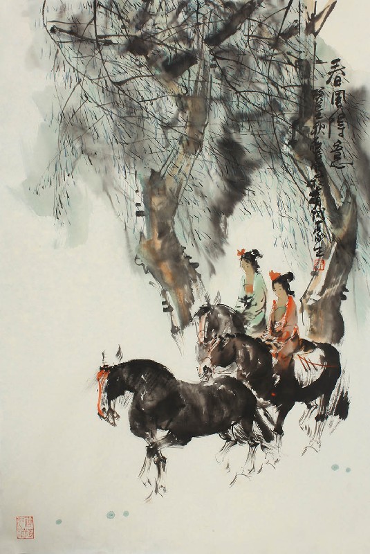 款识:春风得意。癸巳秋敬民写于青城豪生。