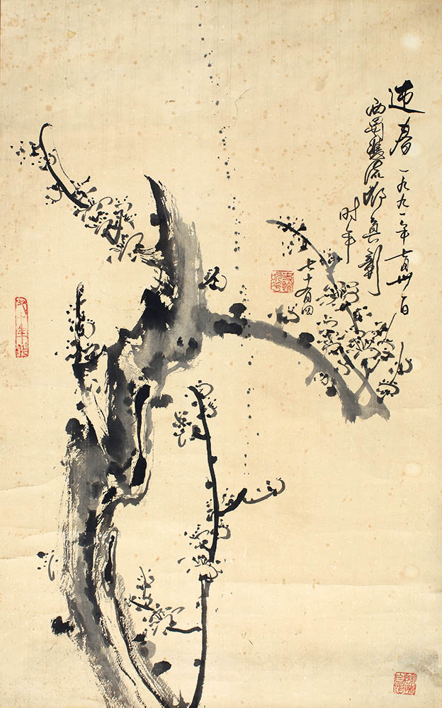 款识:迎春。一九九一年七月卅一日,西蜀双流邓奂彰时年七十有四。