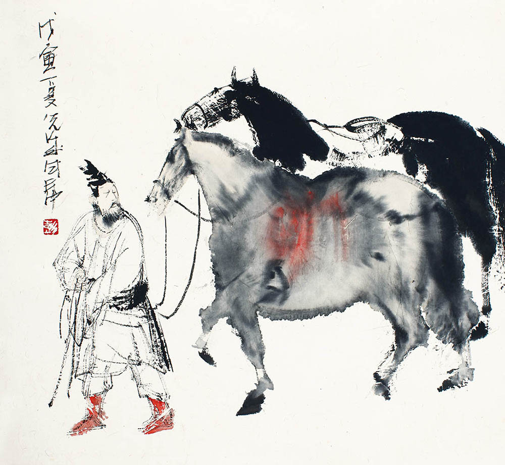简介:彭先诚(b.1941):四川成都人。四川省诗书画院国家一级美术师,中国美术家协会会员,四川美术家协会理事。擅长没骨点染破墨法,善画鞍马人物。作画重于直觉,注重偶然的水墨关系,其作品笔精墨妙,格调清新,风格独异。