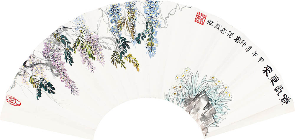 款识:正面:紫气东来。甲午年仲春张志武作。背面:甲午年春西蜀张志武书。