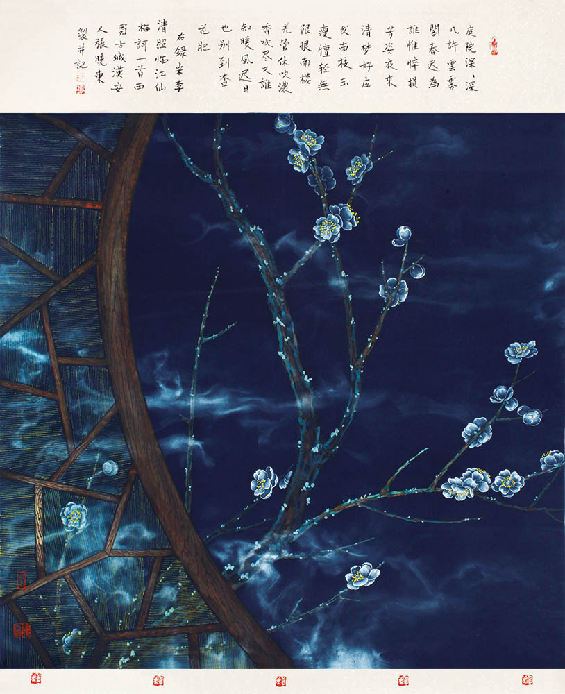 简介:张晓东(b.1965):中国蓝彩工笔画先行者。四川内江人氏,自幼慕大千遗风,笔耕不缀。现任四川省工笔画学会理事、内江大千书画院常务理事、圣水禅林书院院士。
