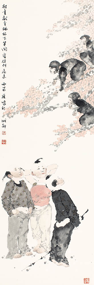 备注:1、画中两猴臂上各有一墨指印,为作者本人所印指纹。2、极精之作。