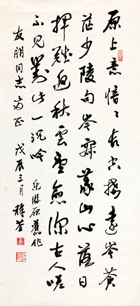 款识:乐游原旧作,友朋同志两正,戊辰三月稚荃。