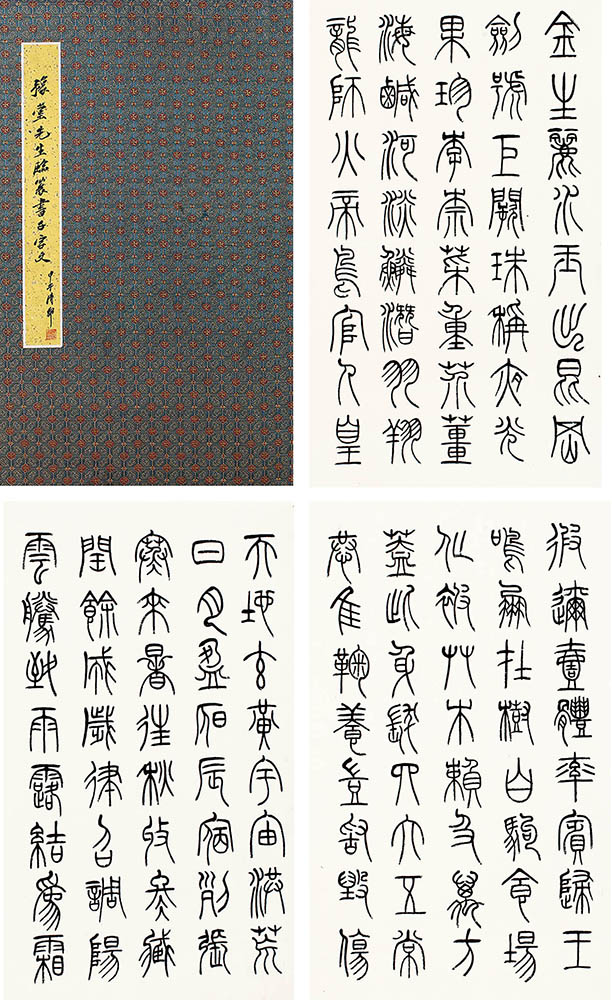 简介:钱君陶(1907-1998):浙江桐乡屠甸镇人,名玉堂、锦堂,字君陶,号豫堂、禹堂、午斋,室名无倦苦斋、新罗钱君陶山馆、抱华精舍。他既是鲁迅先生的学生,装帧艺术的开拓者,也是中国当代“一身精三艺,九十臻高峰”的著名篆刻书画家。曾任西泠印社副社长、上海文艺出版社编审、上海市政协委员等职。他一生治印两万余方,上溯秦汉玺印,下取晚清诸家精髓。 他是一位诗、书、画、印熔于一身的艺术家,创作有《长征印谱》、《君长跋巨卯选》、《鲁迅印谱》、《钱君陶印存》、《钱君陶书籍装帧艺术选》等数十卷 。 款识:壬申一月初九,篆《千字文》于无倦苦斋,钱君陶八十七岁。 译文:天地玄黄,宇宙洪荒,日月盈昃,辰宿列张;寒来暑往,秋收冬藏,闰馀成岁,律吕调阳;云腾致雨,露结为霜,金生丽水,玉出昆冈;剑号巨阙,珠称夜光,果珍李柰,菜重芥姜;海咸河淡,鳞潜羽翔,龙师火帝,鸟官人皇;始制文字,乃服衣裳,推位让国,有虞陶唐;吊民伐罪,周发殷汤,坐朝问道,垂拱平章;爱育黎首,臣伏戎羌,遐迩一体,率宾归王;鸣凤在竹,白驹食场,化被草木,赖及万方;盖此身发,四大五常,恭惟鞠养,岂敢毁伤;女慕贞洁,男效才良,知过必改,得能莫忘;罔谈彼短,靡恃己长,信使可覆,器欲难量;墨悲丝染,诗赞羔羊,景行维贤,克念作圣;德建名立,形端表正,空谷传声,虚堂习听;祸因恶积,福缘善庆,尺璧非宝,寸阴是竞;资父事君,曰严与敬,孝当竭力,忠则尽命;临深履薄,夙兴温凊,似兰斯馨,如松之盛;川流不息,渊澄取映,容止若思,言辞安定;笃初诚美,慎终宜令,荣业所基,籍甚无竟;学优登仕,摄职从政,存以甘棠,去而益咏;乐殊贵贱,礼别尊卑,上和下睦,夫唱妇随;外受傅训,入奉母仪,诸姑伯叔,犹子比儿;孔怀兄弟,同气连枝,交友投分,切磨箴规;仁慈隐恻,造次弗离,节义廉退,颠沛匪亏;性静情逸,心动神疲,守真志满,逐物意移;坚持雅操,好爵自縻,都邑华夏,东西二京;背邙面洛,浮渭据泾,宫殿盘郁,楼观飞惊;图写禽兽,画彩仙灵,丙舍傍启,甲帐对楹;肆筵设席,鼓瑟吹笙,升阶纳陛,弁转疑星;右通广内,左达承明,既集坟典,亦聚群英;杜稿钟隶,漆书壁经,府罗将相,路侠槐卿;户封八县,家给千兵,高冠陪辇,驱毂振缨;世禄侈富,车驾肥轻,策功茂实,勒碑刻铭;磻溪伊尹,佐时阿衡,奄宅曲阜,微旦孰营;桓公匡合,济弱扶倾,绮回汉惠,说感武丁;俊乂密勿,多士寔宁,晋楚更霸,赵魏困横;假途灭虢,践土会盟,何遵约法,韩弊烦刑;起翦颇牧,用军最精,宣威沙漠,驰誉丹青;九州禹迹,百郡秦并,岳宗泰岱,禅主云亭;雁门紫塞,鸡田赤城,昆池碣石,钜野洞庭;旷远绵邈,岩岫杳冥,治本于农,务资稼穑;俶载南亩,我艺黍稷,税熟贡新,劝赏黜陟;孟轲敦素,史鱼秉直,庶几中庸,劳谦谨敕;聆音察理,鉴貌辨色,贻厥嘉猷,勉其祗植;省躬讥诫,宠增抗极,殆辱近耻,林皋幸即;两疏见机,解组谁逼,索居闲处,沉默寂寥;求古寻论,散虑逍遥,欣奏累遣,戚谢欢招;渠荷的历,园莽抽条,枇杷晚翠,梧桐蚤凋;陈根委翳,落叶飘摇,游鹍独运,凌摩绛霄;耽读玩市,寓目囊箱,易輶攸畏,属耳垣墙;具膳餐饭,适口充肠,饱饫烹宰,饥厌糟糠;亲戚故旧,老少异粮,妾御绩纺,侍巾帷房;纨扇圆絜,银烛炜煌,昼眠夕寐,蓝笋象床;弦歌酒宴,接杯举觞,矫手顿足,悦豫且康;嫡后嗣续,祭祀烝尝,稽颡再拜,悚惧恐惶;笺牒简要,顾答审详,骸垢想浴,执热愿凉;驴骡犊特,骇跃超骧,诛斩贼盗,捕获叛亡;布射僚丸,嵇琴阮啸,恬笔伦纸,钧巧任钓;释纷利俗,竝皆佳妙,毛施淑姿,工颦妍笑;年矢每催,曦晖朗曜,璇玑悬斡,晦魄环照;指薪修祜,永绥吉劭,矩步引领,俯仰廊庙;束带矜庄,徘徊瞻眺,孤陋寡闻,愚蒙等诮;谓语助者,焉哉乎也。