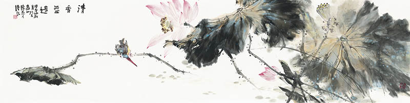 款识:清香益远甲午中秋月于古嘉州陈志才绘记