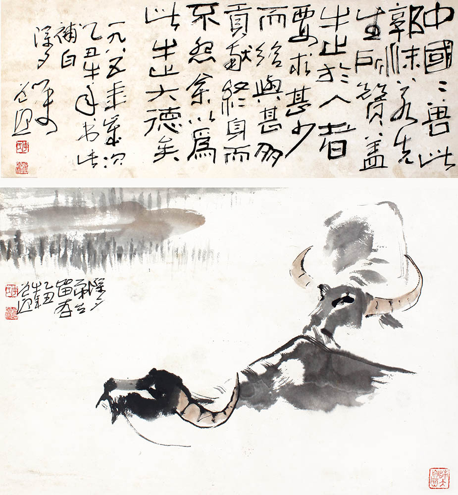 款识:本作:除夕弟台留存,乙丑牛年,道熙。诗堂:一九八五年岁次乙丑牛年书此补白,除夕嘱,道熙。