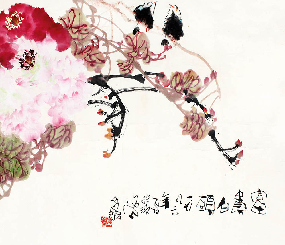 简介:谭昌镕(b.1933):斋号没名堂,四川成都人。中国杰出的花鸟画家、舞台美术家。中国美术家协会会员,四川中国画研究会会长。中国艺术家协会会员,中国戏曲家协会会员,中国舞台艺术家协会四川分会理事。人民大会堂、天安门、钓鱼台、北京市市委市政府和北京饭店都收藏和陈列有他许多作品。