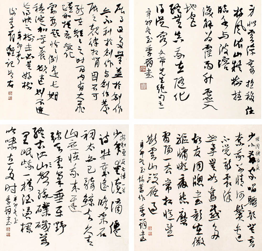 款识:1、辛卯春,谢季筠杂记如右。2、文希先生绝句之一,辛卯冬至,季筠书。3、辛卯冬至,季筠书。4、赠同窗好友,辛卯冬至录旧作,季筠书。