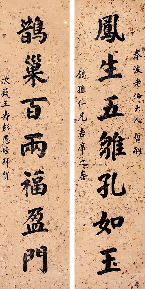 款识:春波老伯大人哲嗣,锡孙仁兄吉席之喜,次篯王寿彭愚侄拜贺。