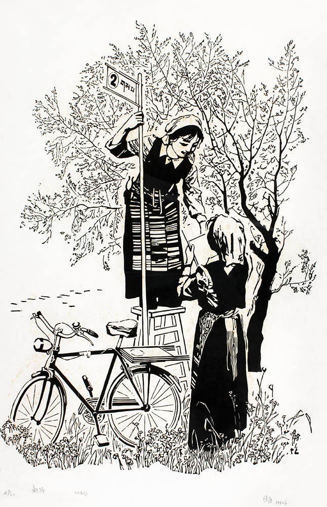 款识:A7/50,新路(木刻),徐匡,1980年。